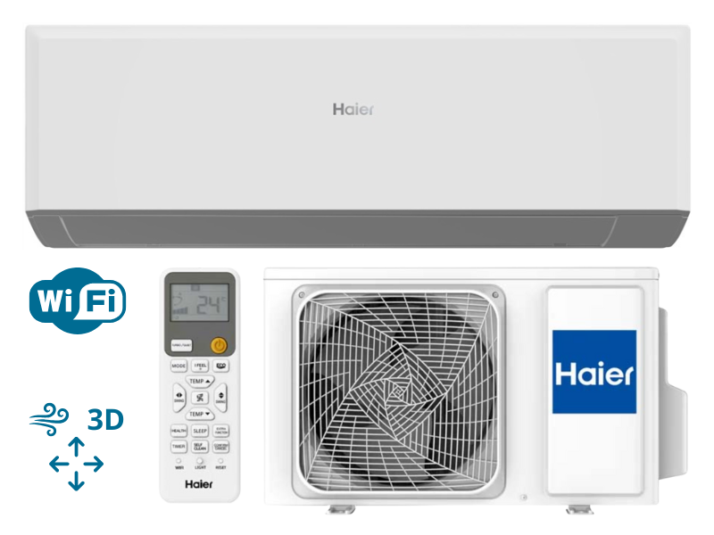 - Haier REVIVE Plus – nowoczesny, energooszczędny klimatyzator z funkcjami I FEEL, 3D nawiew, SELF CLEAN i sterowaniem Wi-Fi.